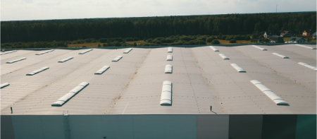 Jumta konstrukciju veido nesošās tērauda dzelzsbetona sijas, tērauda loksnes ar trapecveida rievojumu, tvaika izolācijas slānis un savstarpēji savienoti PIR siltumizolācijas segmenti vai alternatīvi – minerālizolācija un hidroizolācijas plēve virsējā slānī. PIR jumta izolācijas siltuma vadītspēja ir U = 0,24 W/m2K.